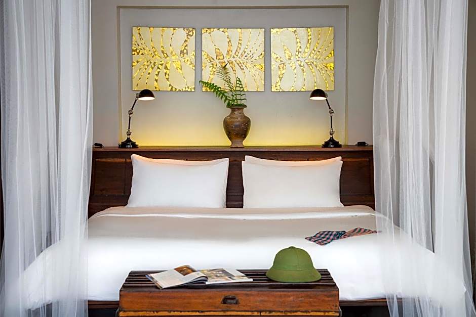 Our Heritage Pool Suites feature a private outdoor swimming pool (length 26 feet) with its terrace and seating to sunbathe and indulge in quitness after a day at the temples. Reinvigorate in your own steam room and indulge in the oversize stone bathtub. High speed internet, Malongo espresso machine, fine teas, daily turndown service and separate WCs. Enjoy the serenity of your own boutique pool sanctuary (indoor 262 ft² / 861 ft²) tucked away 15 minutes from Angkor.