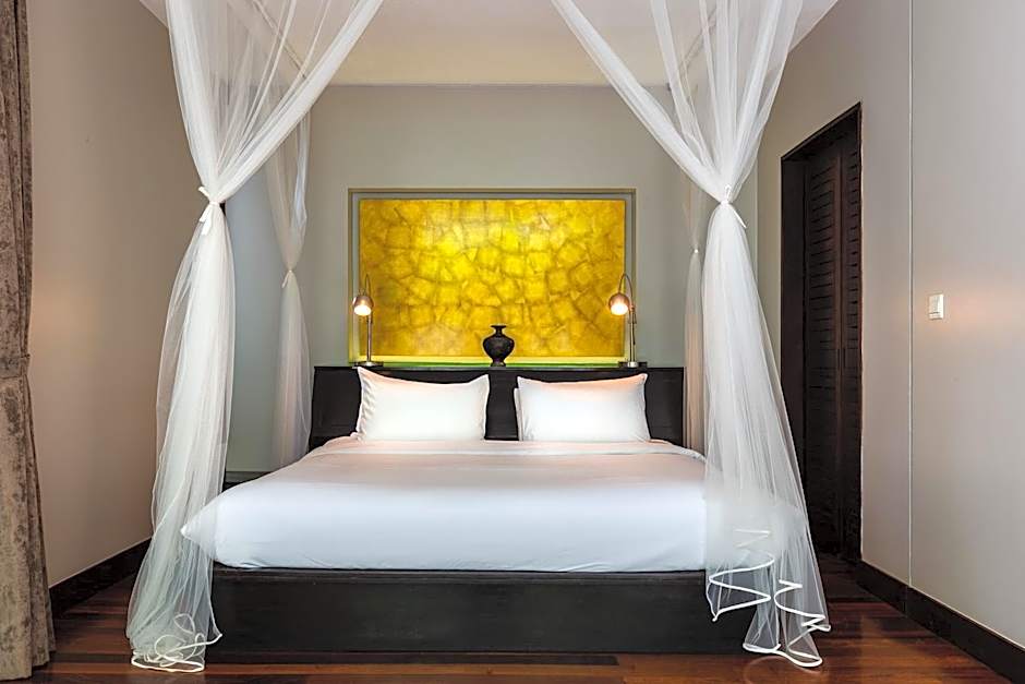 Our premium residence pool suite (180 sqm / 1,938 ft²) is your own Siem Reap pool home-away-from-home. It features both an outdoor jacuzzi and a private pool, thatched-roof outdoor lounge in a private walled garden plus work area, a large salon and beautiful dining table. Reinvigorate in your private steam room and indulge in the oversize stone bathtub in the serenity of your own private sanctuary.